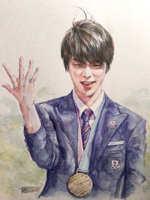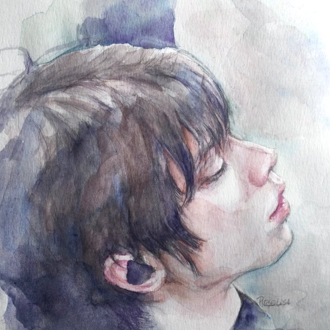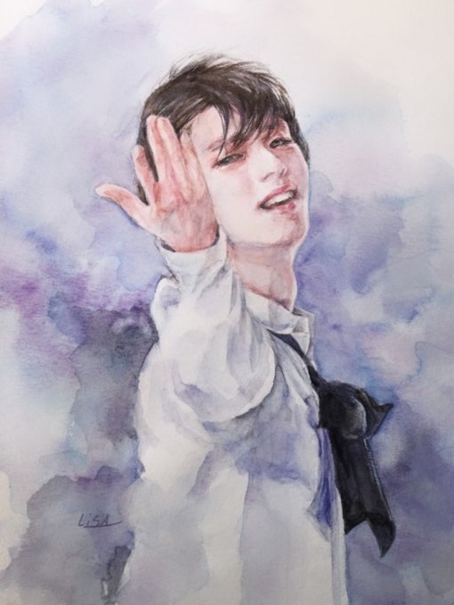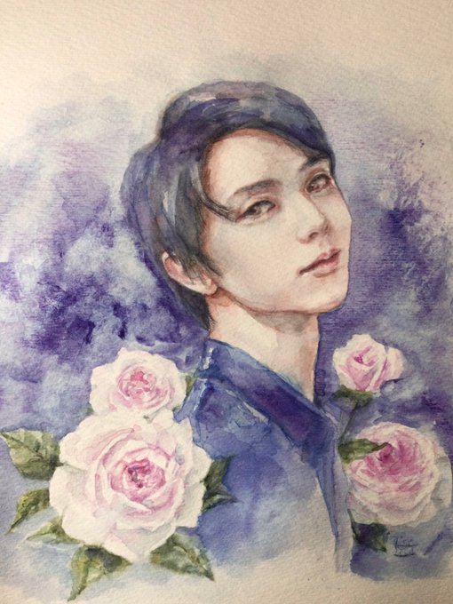 お暑うございます #羽生結弦 #FaOI2023 #HANYUYUZURU𓃵 #yuzuruhanyu #羽生クラスタ絵画部 #水彩画 KISS &CRYのお写真から描かせて頂きました