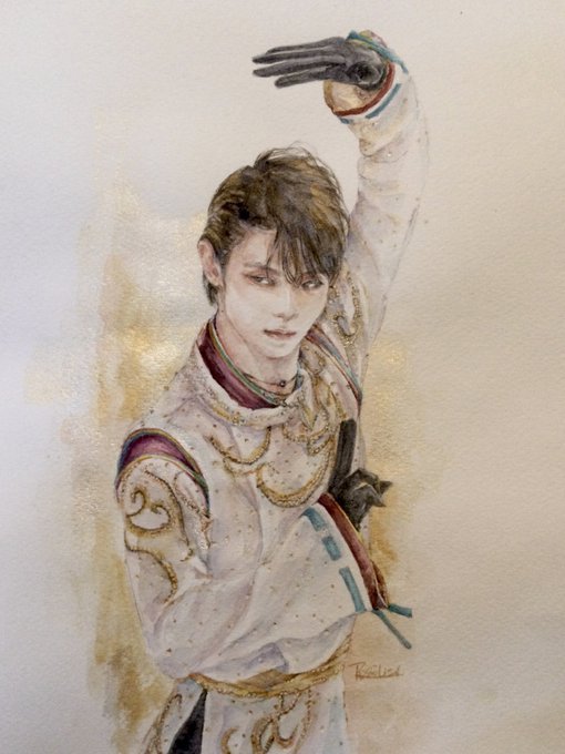夜明けを告げたのは 光と闇を司る黄金のプログラム「SEIMEI」でした Rabbit Rabbit White Rabbit 🐇 #羽生結弦 #HANYUYUZURU𓃵 #YuzuruHanyu𓃵 #プロローグ #羽生クラスタ絵画部 #羽生結弦選手が今日も元気で幸せでありますように デジタルTVガイドのお写真から描かせて頂きました 水彩と色鉛筆で