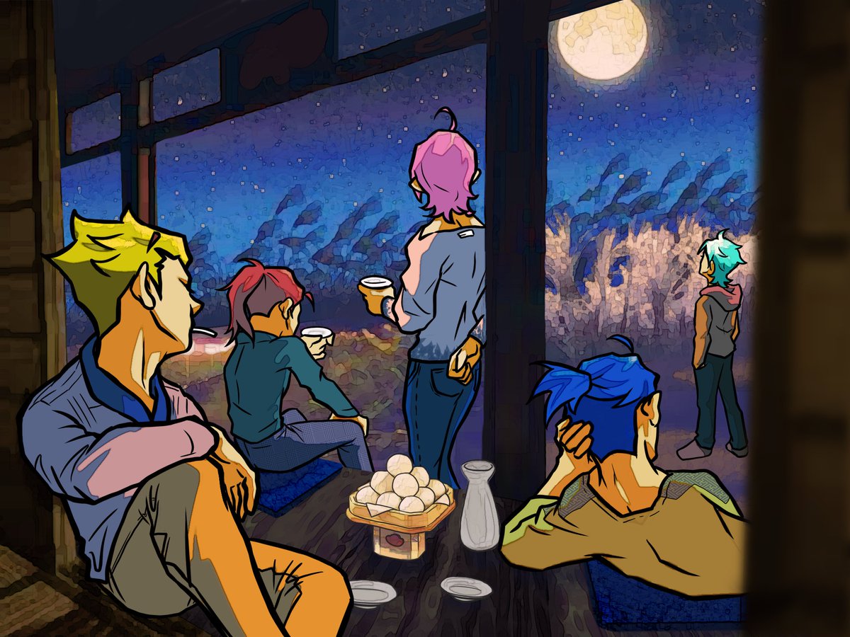 #5機嫌いかが季節イラスト お待たせしました今年の秋イラストです お題、提案して下さった方々ありがとうございました! 無事【月見🎑】描き終えました!
