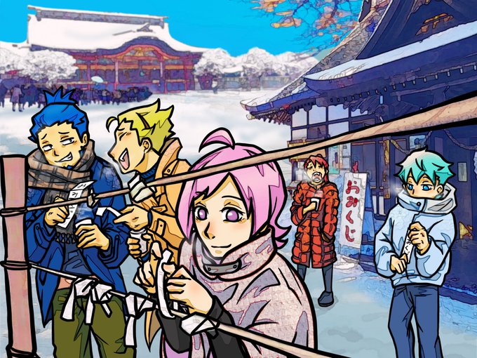 42 212 #5機嫌いかが季節イラスト お待たせしました今年の冬イラストです お題、提案して下さった方々ありがとうございました! 無事【初詣おみくじ】描き終えました! 22/12/05 09:56