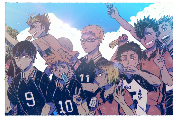 3 23 何と誰(みんな好きだ!!)描くかすごい悩んでやっぱり彼らの原点のこの辺りかなと暑いので練習後はアイスとか食べてて欲しい気持ち… #ハイキューの日 20/08/20 17:29