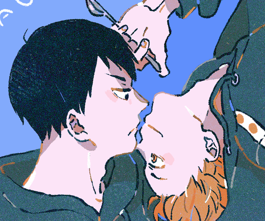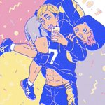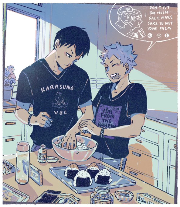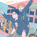 何と誰(みんな好きだ!!)描くかすごい悩んでやっぱり彼らの原点のこの辺りかなと暑いので練習後はアイスとか食べてて欲しい気持ち… #ハイキューの日