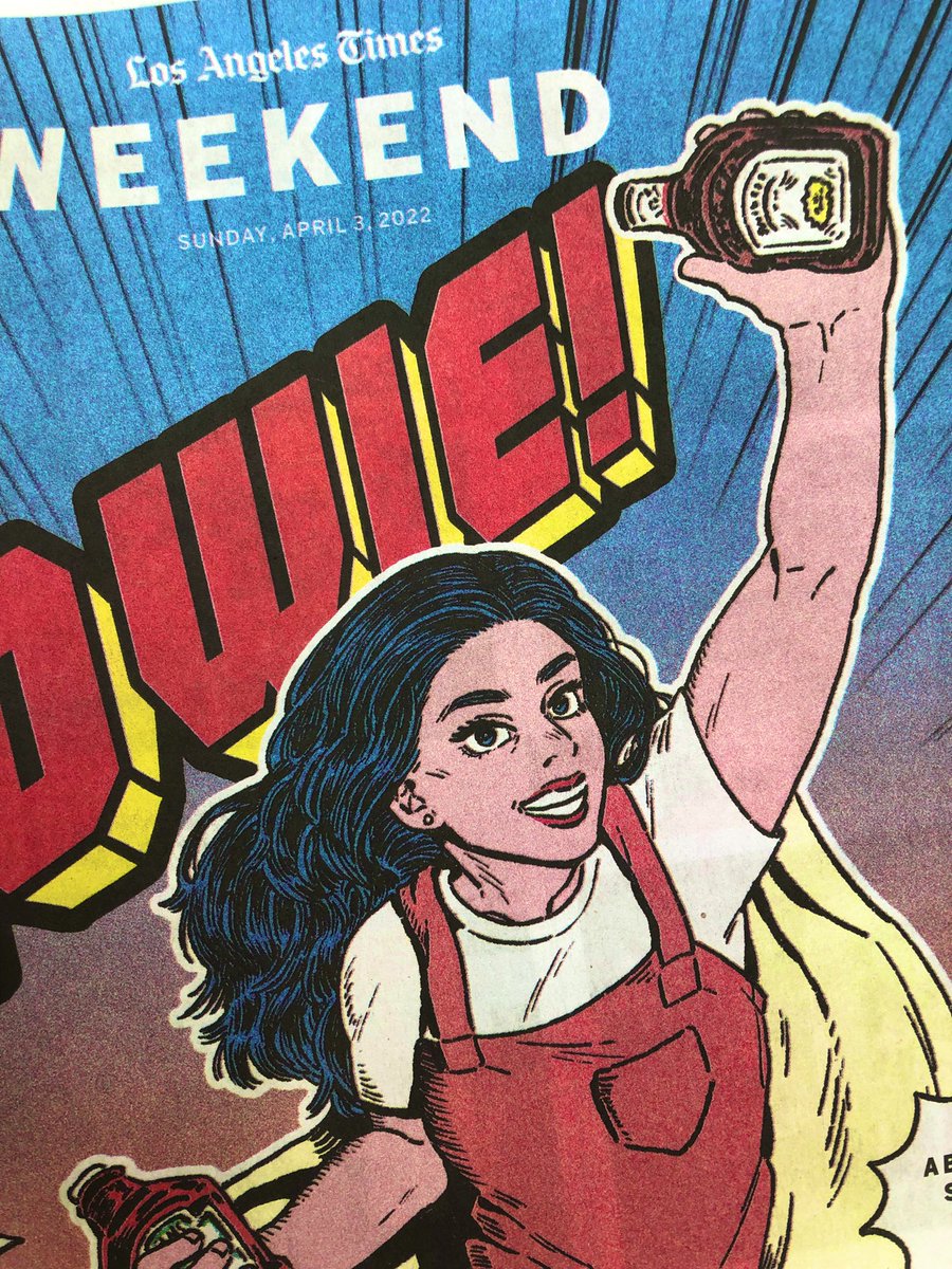 Drew a ordinary superhero along with her confinement for Los Angeles Times ! LA Timesにアメコミ風イラスト描かせて頂きました〜
