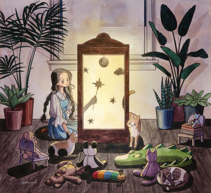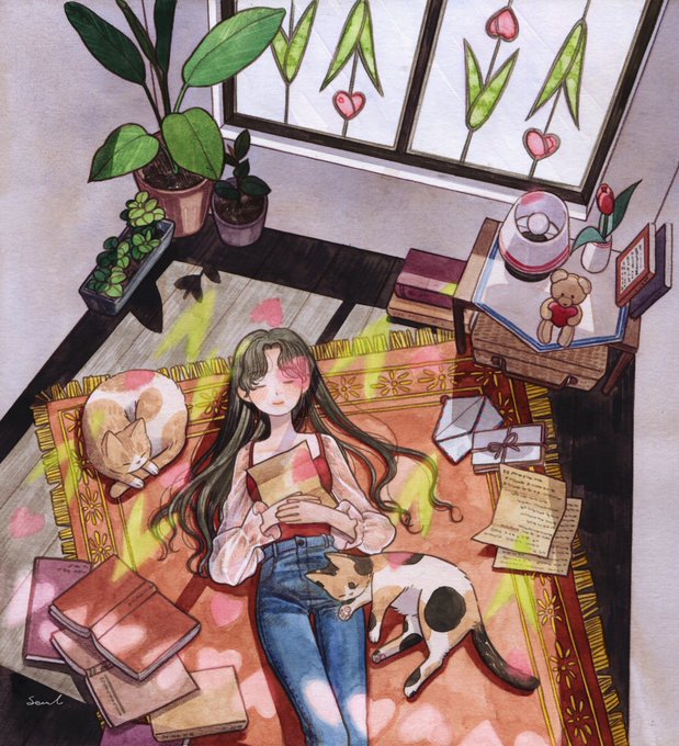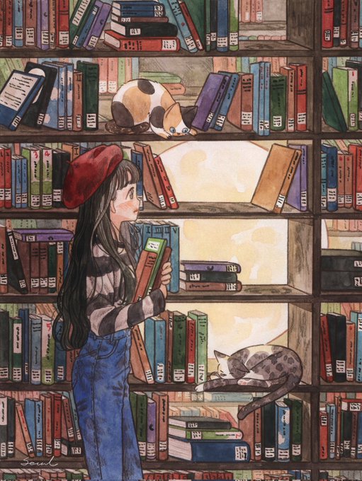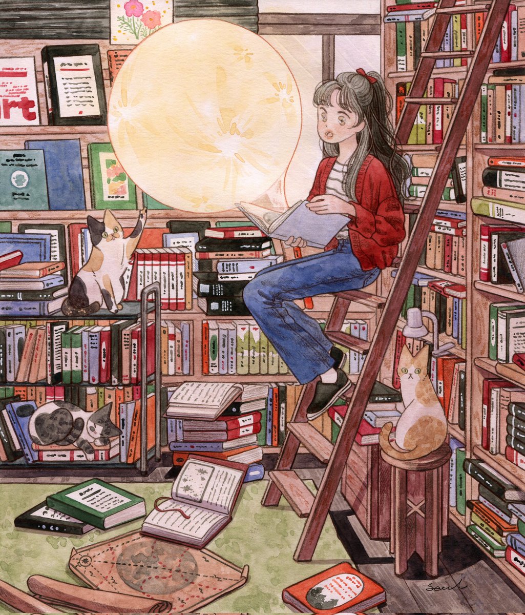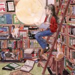 136 521 < 책장 너머로 보이는 낯선 달> 📚🌙🐈 2019년에 그렸던 그림을 새로 리메이크 해보았어요 ʕ•ᴥ•ʔ 22/01/19 19:51