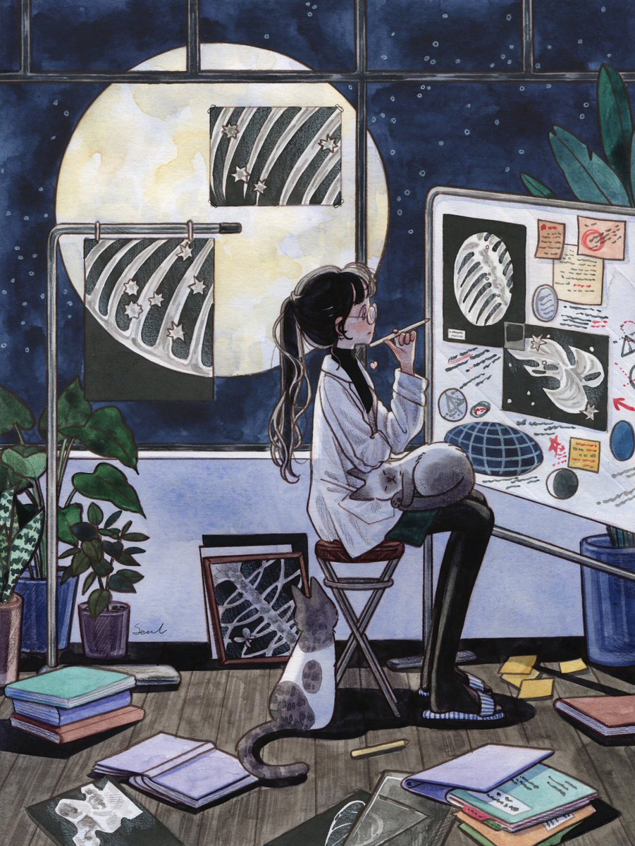 <달의 초상을 연구하는 연구자 > 🌙🐈🔬