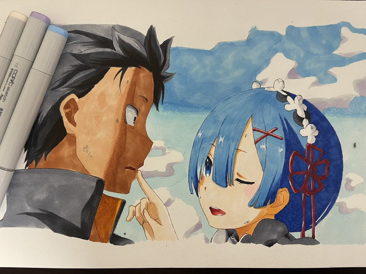 0 6 描けたー! スバルが日焼けし過ぎた笑 コピックの色増やしたい😭 #コピック #イラスト #リゼロ 21/03/27 22:14