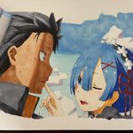 描けたー! スバルが日焼けし過ぎた笑 コピックの色増やしたい😭 #コピック #イラスト #リゼロ