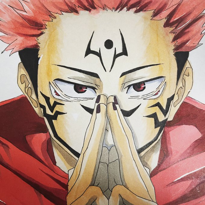 0 2 両面宿儺描いてみました! ふちっこの方が はみ出てしまう笑 #コピック #呪術廻戦 #両面宿儺 21/04/15 23:02