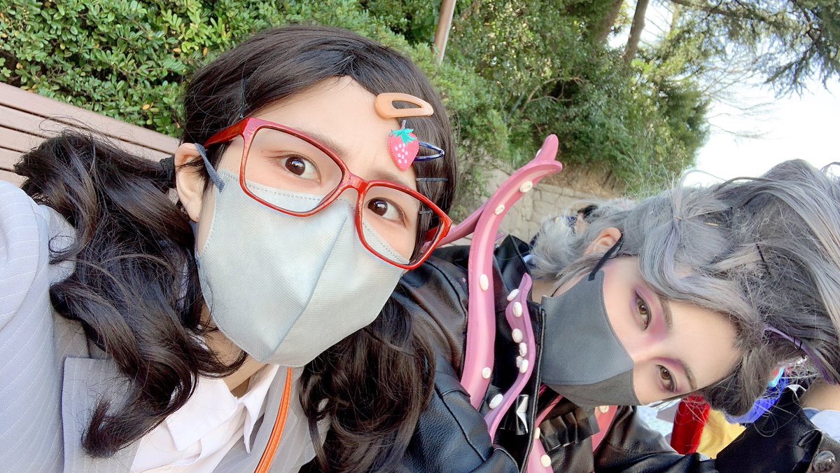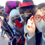 ろくすけさんご本人ともツーショしてもらったんだけど後ろに見切れ🐙主従居て笑ったww ぬいも🐙主従も可愛いし最高の写真www ろくすけさん、みんみんさん、れいらさんありがとうございました! 🐙👑@villains1227 🐙@aoi_teyannn 🕶@Ro01ko_bo 👓@litomas117 #Dハロ仮装2022 #手下仮装 #Dハロ