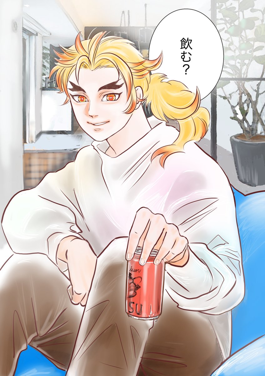 藤の家に行くと雨に降られた炎柱がいましたみたいな。 前髪下ろしたの見てみたいとのリクがあり私も描いてみたくて今日の寿朗さんです。 #鬼滅の刃ファンアート #煉獄杏寿郎 #私の絵柄が性癖に刺さる人に届いてほしい #私の絵柄が好みって人にフォローされたい