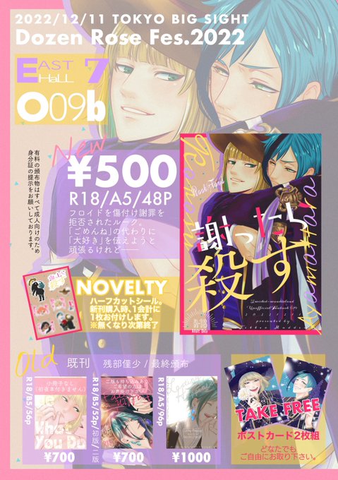 7 24 【12/11DRF2022】弓矢の靫 お品書き ボタンが多くてオ─ララなポスターが目印です よろしくお願いします ↓各サンプルはこちら pixiv:pixiv.net/artworks/10339… 22/12/06 20:32