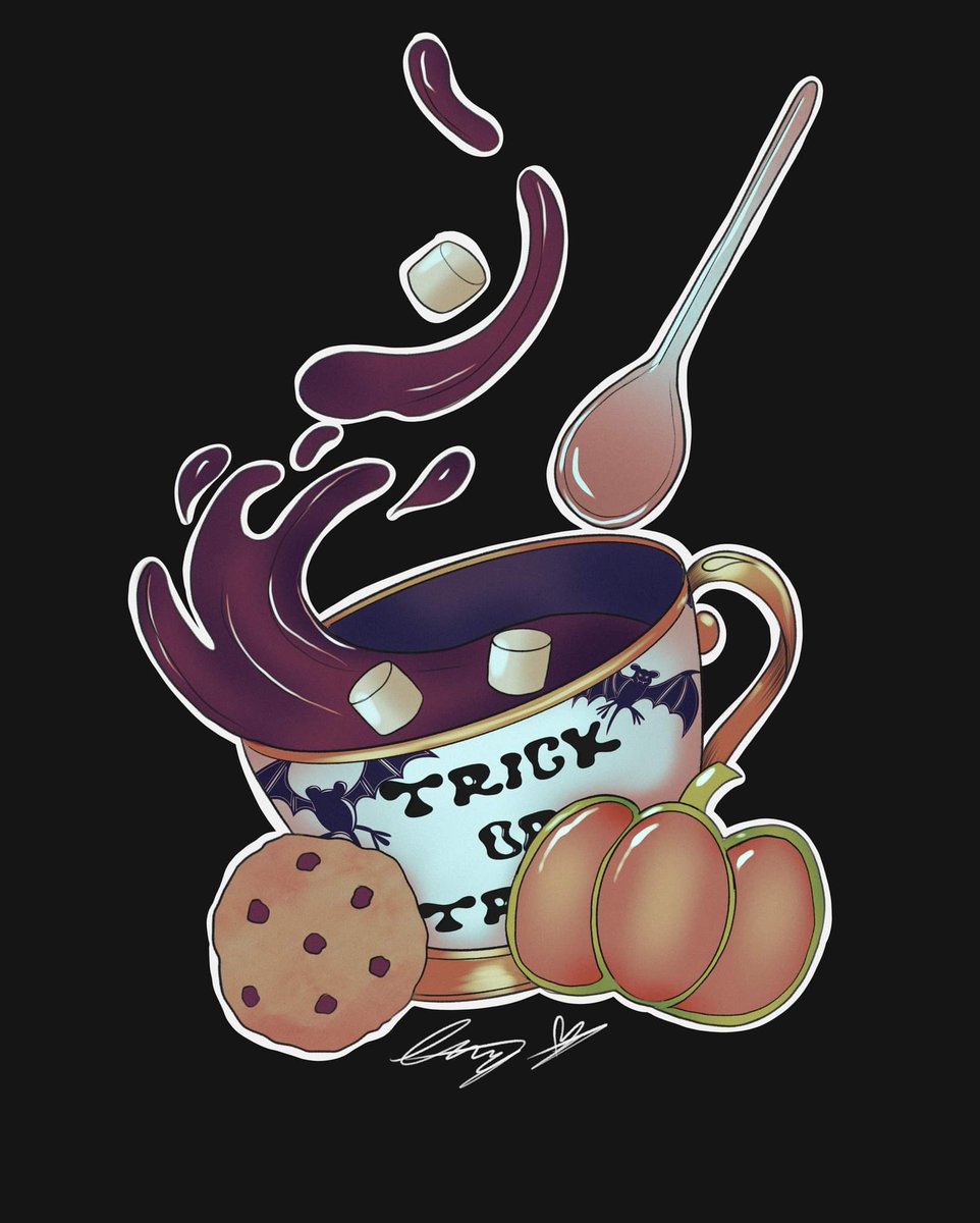 Day:17 autumn 🖤 Nothing says autumn to me like a delicious cup of warm hot chocolate ☺️ #meotashi2022inktober #inktober #halloween #artist #drawlloween #drawtober #art