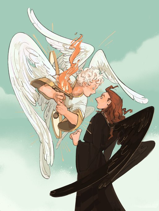 i love the mixture of naïve and affectedly self-assured that michael sheen plays Aziraphale with in the early flashbacks. funniest little cherub in the garden. no thoughts until he gave that sword away.