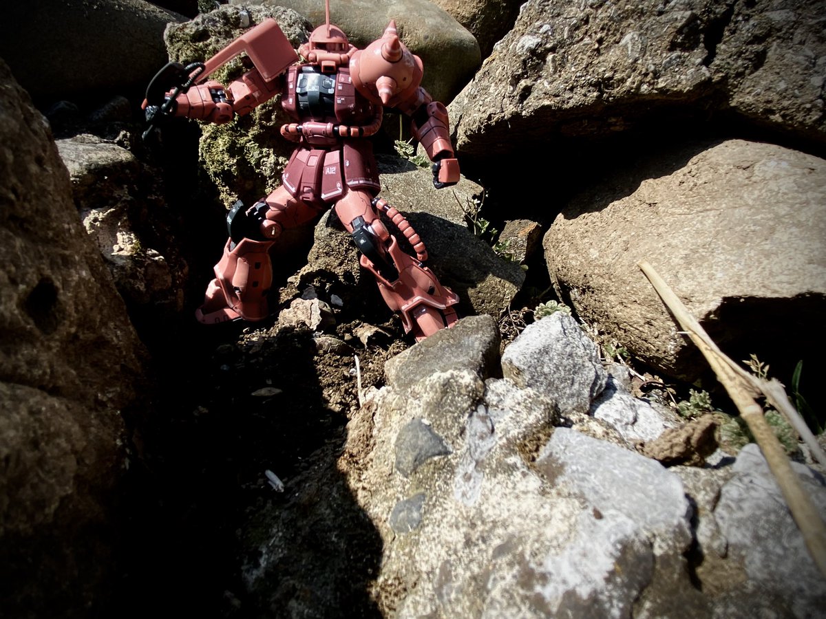 RGシャア専用ザクⅡ ザクはこうゆう場所が似合う✌︎✌︎ 再販並ぶ時間より、作る時間を充実させたいとおもう日々です。 積みと制作を同時に進めていきたいですね! #ガンプラ好きと繋がりたい #ガンプラの画像を貼るとRTされると聞いて