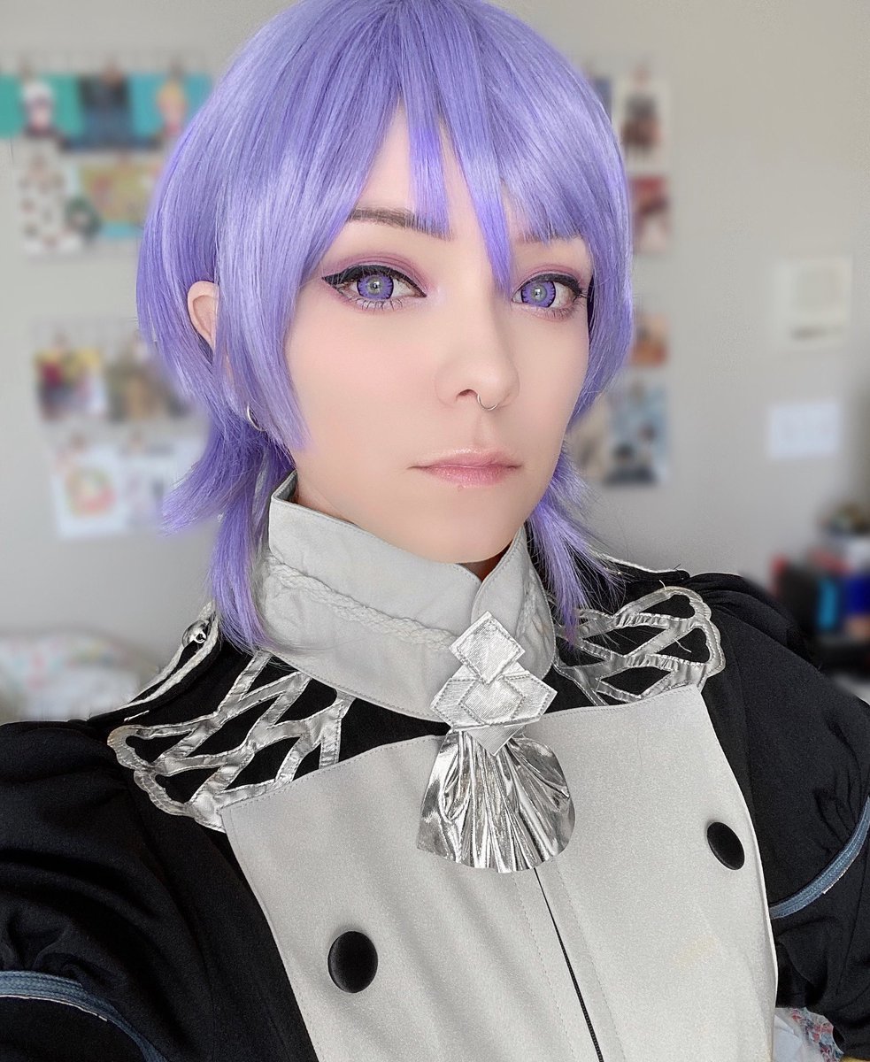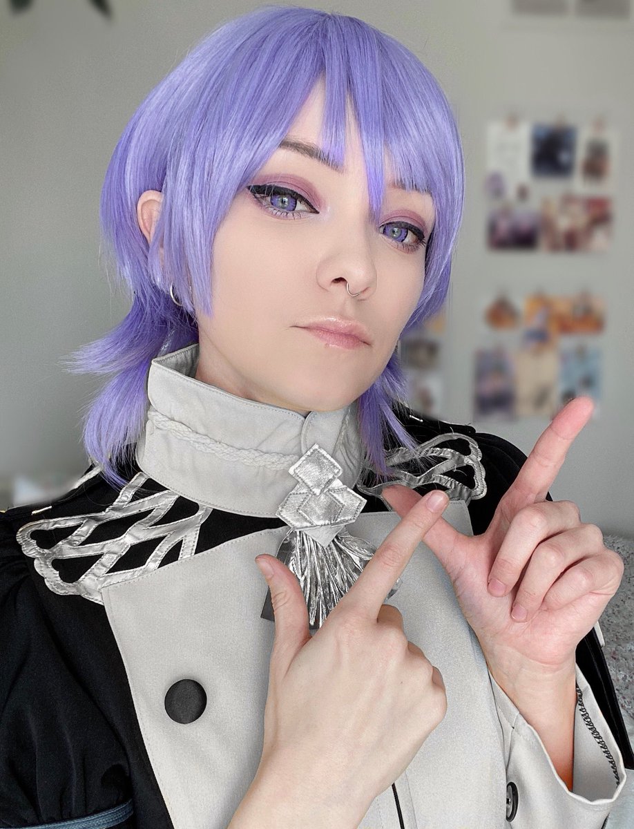 I FINALLY STYLED THE NEW WIG AND IT’S SO MUCH BETTER!💜🐺 So here’s some updated pics! (and I finished Officer’s Academy sword🗡) #fe3h #yurileclerc #ashenwolves #fireemblem #cosplay