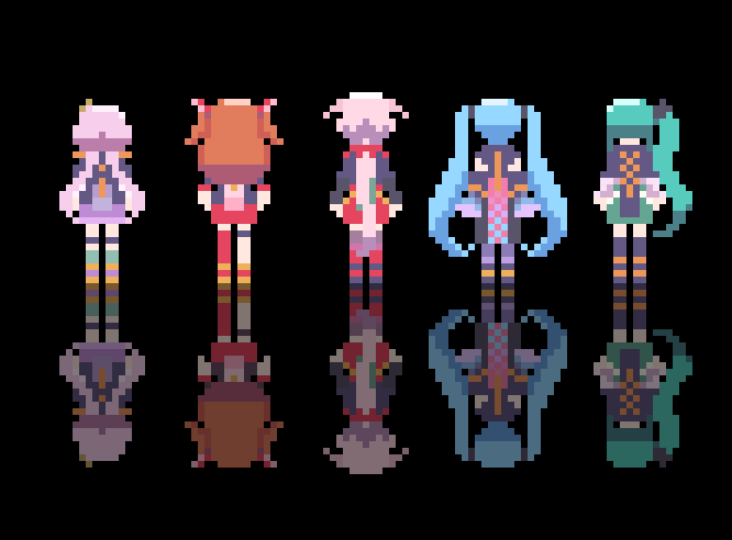 64×64でどっとライブの新人組 みんな衣装が素敵すぎる #pixelart #どっとライブ #夢境画廊 #ルルン・ルルリカ #ななみりうむ