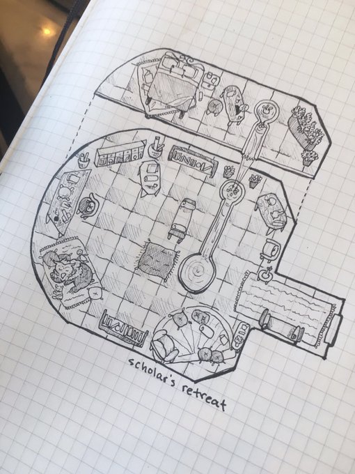 Okay okay okay day 3 of #Inktober done. A super personal map of my divination wizard’s room for “scholar’s retreat”. #rollforinktober #maptober