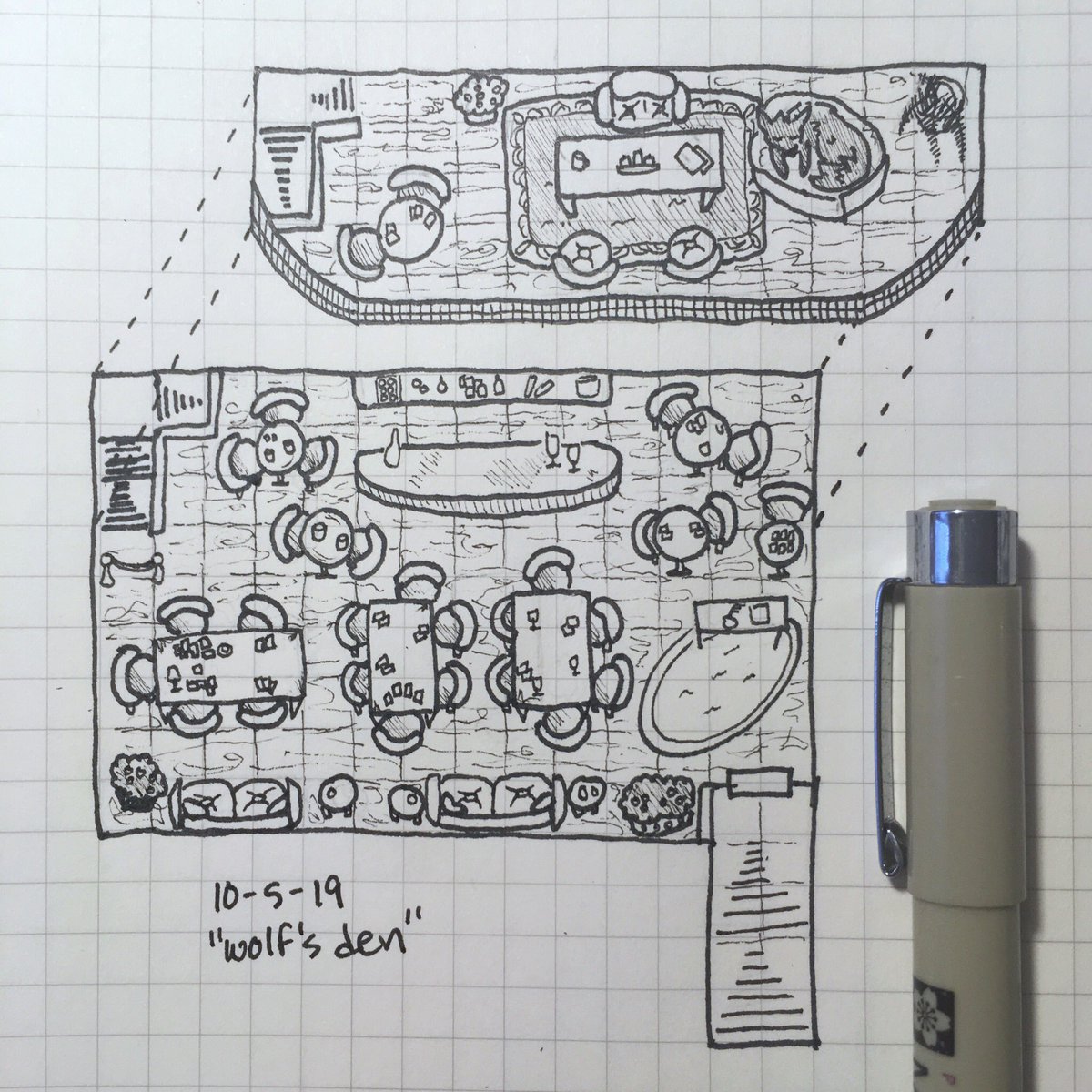 #inktoberday5 - “wolf’s den”. I went a metaphorical route with this one but maybe this gambling whole can make a real appearance in a campaign :) #Inktober #rollforinktober