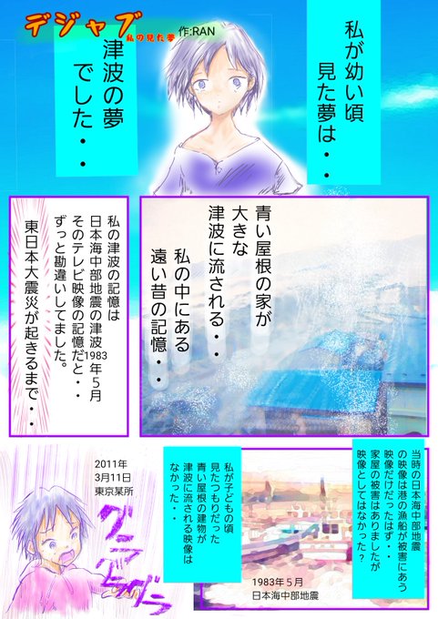 タイムリープとは少し違う私の不思議体験…その漫画1~4頁です。 東日本大震災の前に、私におきたクロニクルデジャブ(頻回なデジャブ) 今は、ないのですが、 なぜかここ数日、災害が気になって、調べてます。 変な感が現実にならないことを願ってます。 #地震 #地震前兆 #漫画が読めるハッシュタグ