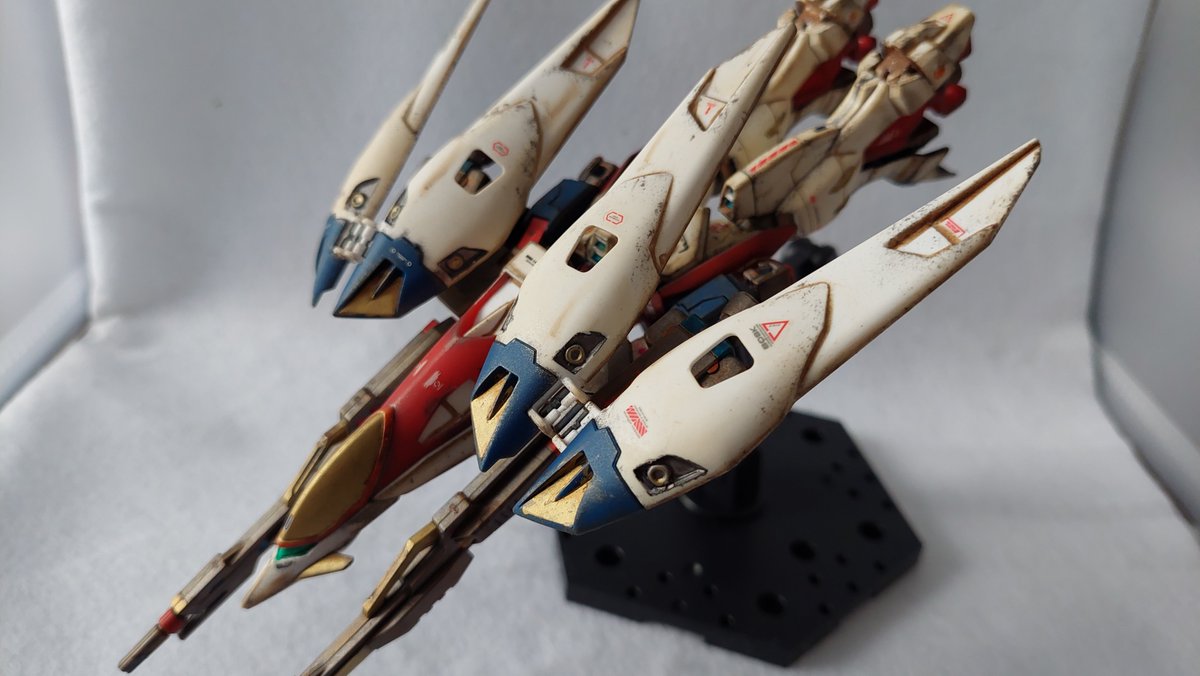 【ガンプラ作ったよ】リライジングガンダム dwa.hatenablog.com/entry/2021/10/… 合体元の4機をメラミン、つや消し、光沢、パール光沢と異なる仕上げにして組み上げてみました。 #ガンプラ #ガンプラ好きと繋がりたい #g_bd