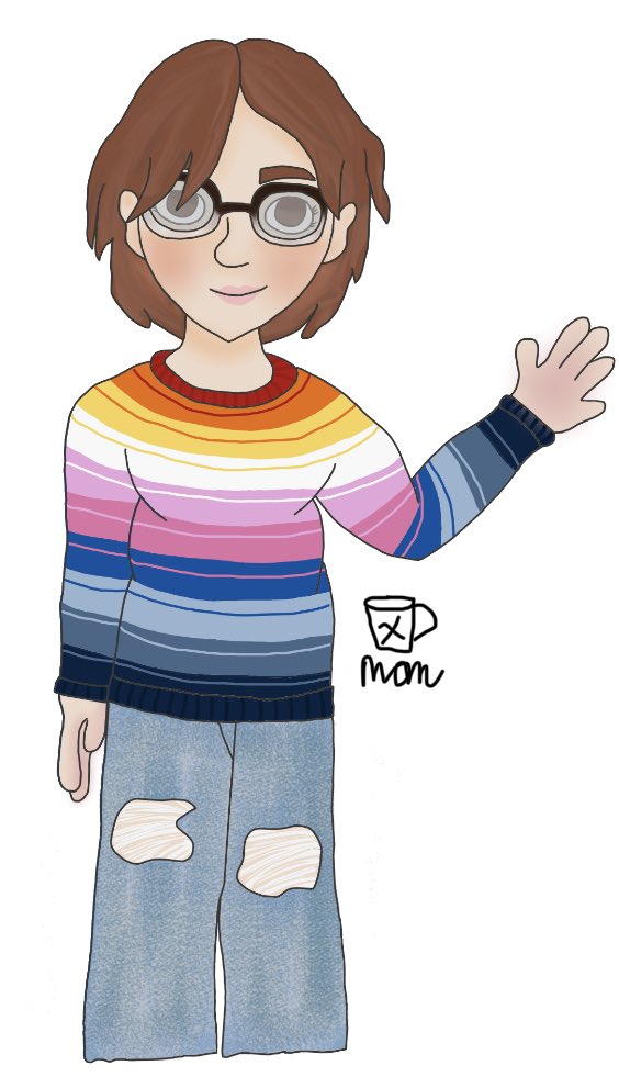 I am getting better at this digital art stuff. Have me in a rainbow sweater #digitalart #rainbowsweater #rippedjeans #colorful #glasses #cozyclothes #wave #medibang