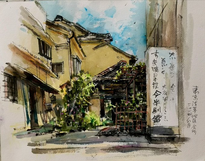 这本是一条祥和、时尚、生存的路,今天确成了战场😔(与之交叉的就是乌鲁木齐路中路) #watercolor #watercolorpainting #watercolorartist #watercolorart #水彩 #水彩畫 #水彩画 #繪畫 #paint #painting #art #artist #sketch #draw #landscapepainting #landscapepaintings