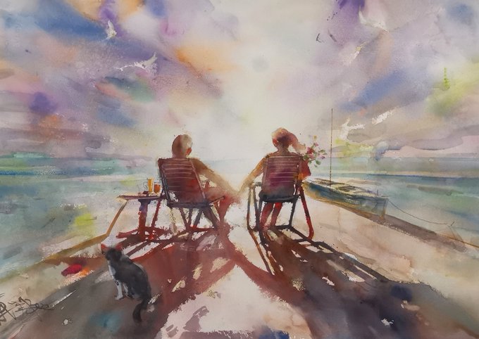 2022年6月新作。 被封控在家中,但思想是自由的。 #watercolor #watercolorpainting #watercolorartist #watercolorart #水彩 #水彩畫 #水彩画 #繪畫 #paint #painting #art #artist #sketch #draw #landscapepainting #landscapepaintings