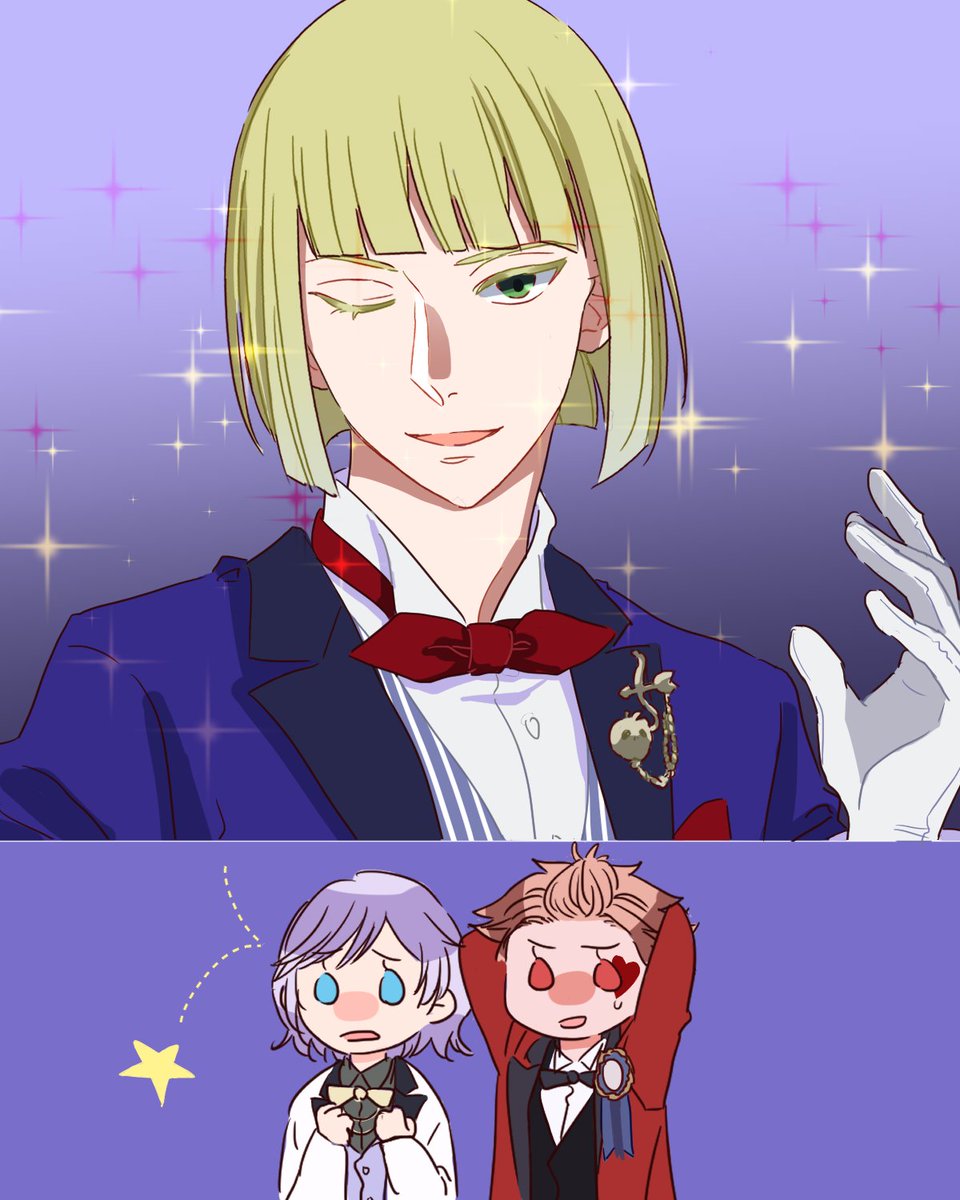 5 32 #ツイステファンアート #ローディング画面に出た4人を描く リハビリがてら落書き! タグお借りしました〜 20/04/26 23:18