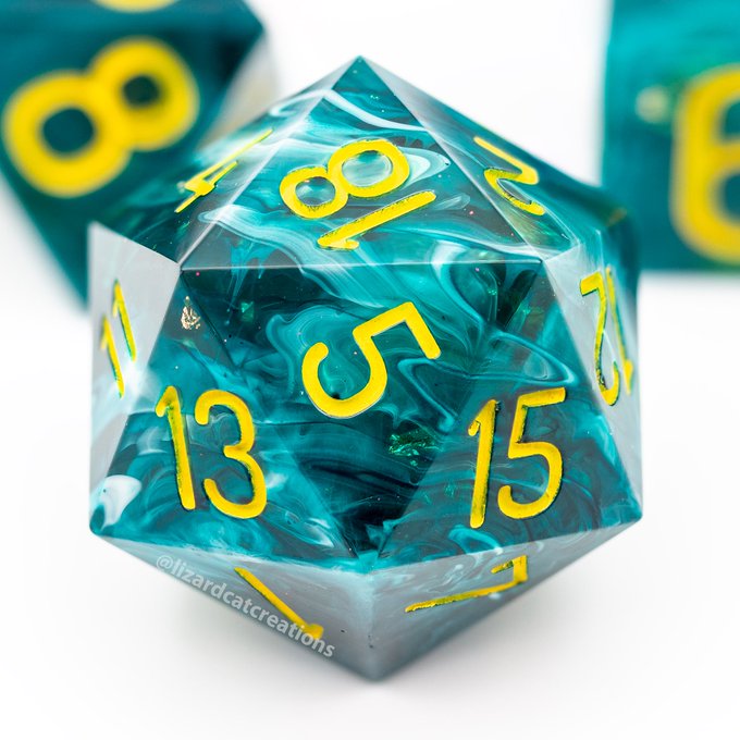 🌊Beyond the Deep🌊 Firestorm, but water! You’ll notice I tend to make elemental-inspired sets 😅 This one is a personal fav, and is inspired by the Frigid Depths my party traveled in our ongoing Wildemount campaign #dice #dnd #CriticalRoleArt #handmadedice