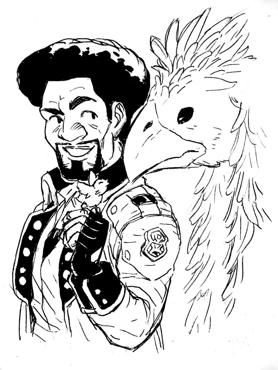 Friends were talking about FFXIII the other day so I thought I'd draw Sazh, one of my favorite characters in...any video game.....#1 dad of birds and boys #Inktober