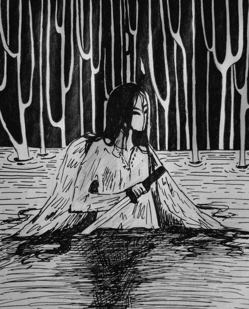 День 5. Берегиня. Духи-охоронці повстали, щоб нагадати - хто до нас прийде з мечем, той від меча і загине. #inktoberwar #inktober2022 #russiaisateroriststate