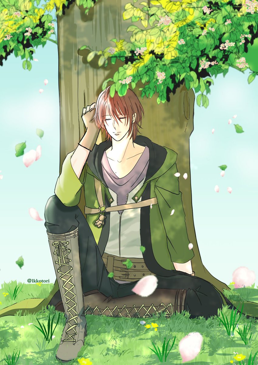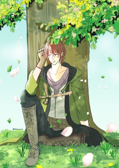 #生きる意味をみつけたクマさんの手をとり祝福を_ルーク誕生祭2023 #イケプリFA 『ルークのお誕生日まで あと2週間❣️』 今日はお昼寝クマさん🧸💤💚 背景初めて描いたけど、やっぱり難しい🥹 きっと色々不自然だけど、大目に見てください🙏💦