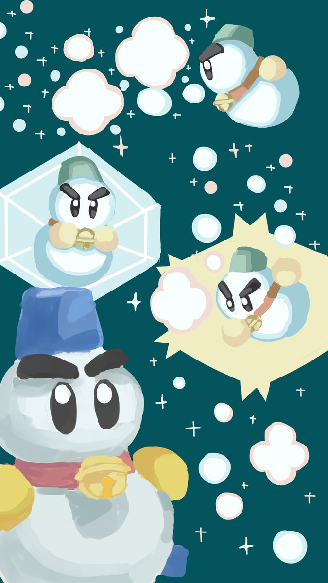 #カービィ版深夜のお絵かき60分一本勝負 スカーフィをトスで落とし続けていたことを思い出しながら描いていたらいつの間にかワドルドゥ高速移動バグを描いていた