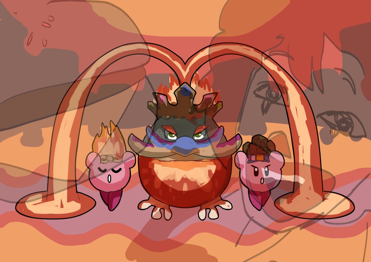 15 91 #カービィ版深夜のお絵かき60分一本勝負 M字にマグマ流す技がアホっぽくて好き!っていうイラスト描こうと思ったらなんかよくわからないことになっちゃった… 21/01/10 00:10