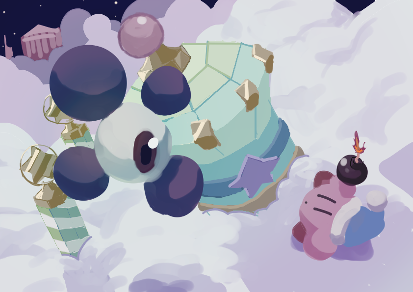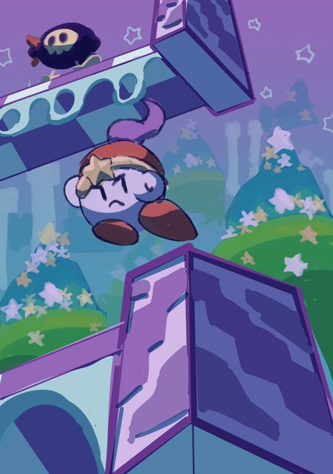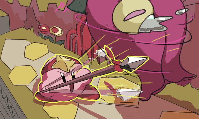 12 50 #カービィ版深夜のお絵かき60分一本勝負 スカーフィをトスで落とし続けていたことを思い出しながら描いていたらいつの間にかワドルドゥ高速移動バグを描いていた 21/03/21 00:05