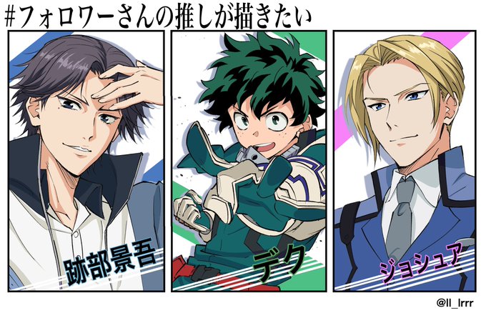 #フォロワーさんの推しが描きたい ぷにさん(@_AilingPuni)、とみこさん(@tomiko)アラスカさん(@alaska00ahk)からのリクエストで、テニプリの跡部様、ヒロアカのデクくん、ガンダム00のジョシュアさんを描かせていただきました! リクエストありがとうございました〜!!
