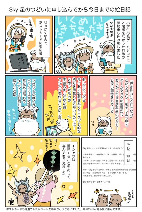 昨日Skyチャリティーポストカードを買いに行ってきたことを 興奮冷めないうちに絵日記に描きました🙈 Mihoさん(@miho_sky_hige)さん、星の子さん、ありがとうございました✨✨ #thatskygame #sky星を紡ぐ子どもたち #SkyAssemblies