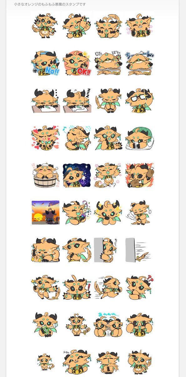 【LINEスタンプリリースのおしらせ】 #夏輝の40日間スタンプイラストチャレンジ で描いたイラストをLINEに登録してきました!しっかり40個、もふもふ詰め込んだので、よかったら使ってやってください〜✨🙏😈 ▽▽▽▽▽ [小さなオレンジのもふもふ悪魔] line.me/S/sticker/2172…