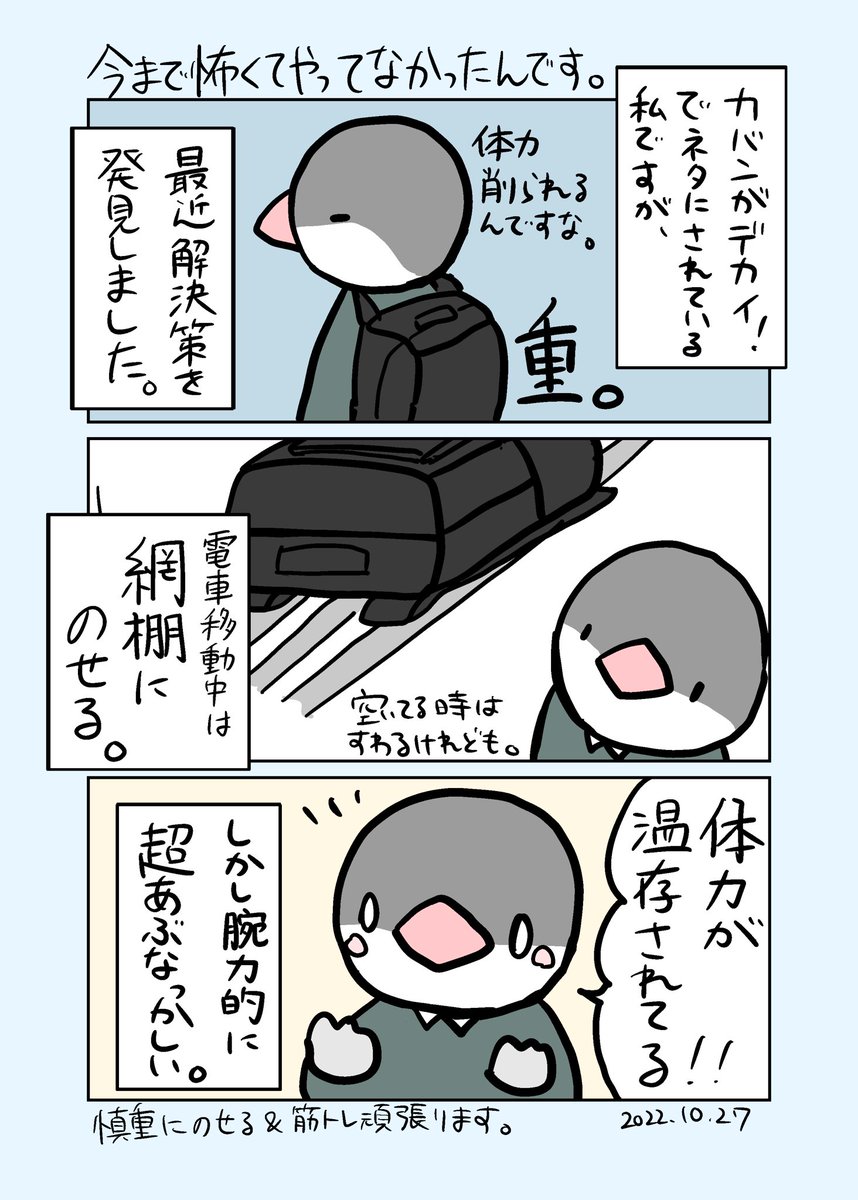 1 4 やはり重い荷物によってかなりHPが削られていたようです。 #エッセイ漫画 #漫画が読めるハッシュタグ 22/10/28 01:50