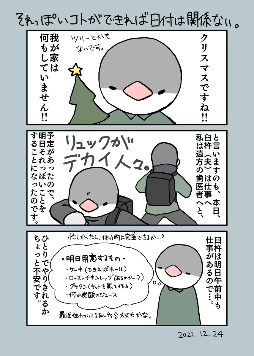 1 1 我が家のクリスマスは明日来ます。 (クリスマスはもとから明日で今日はイブなのですが) #エッセイ漫画 #漫画が読めるハッシュタグ 22/12/25 00:09