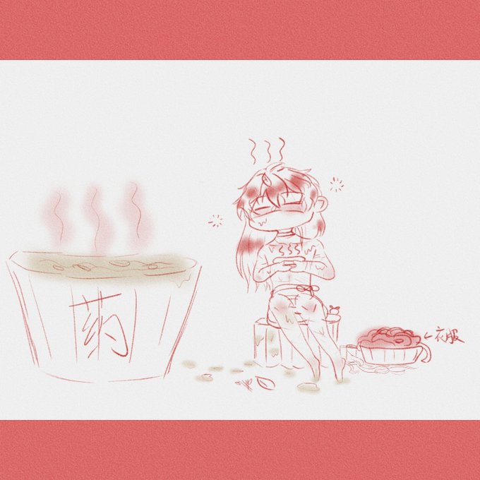 除夕快乐!(大晦日には誰もが薬浴をするのが伝統です,本当に気持ちいいです) #落書き #rkgk