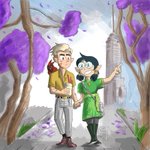 #TOHMexicoAesthetic 1/? - Hunter and Willow, Alameda Central, Ciudad de México, among Jacarandas. Esta serie hará algunas imágenes y paisajes mexicanos (más de CDMX) con personajes de The Owl House. #TOHSPOILERS #TheOwlHouse #Hunter #Huntllow #WillowPark #TOHfanart