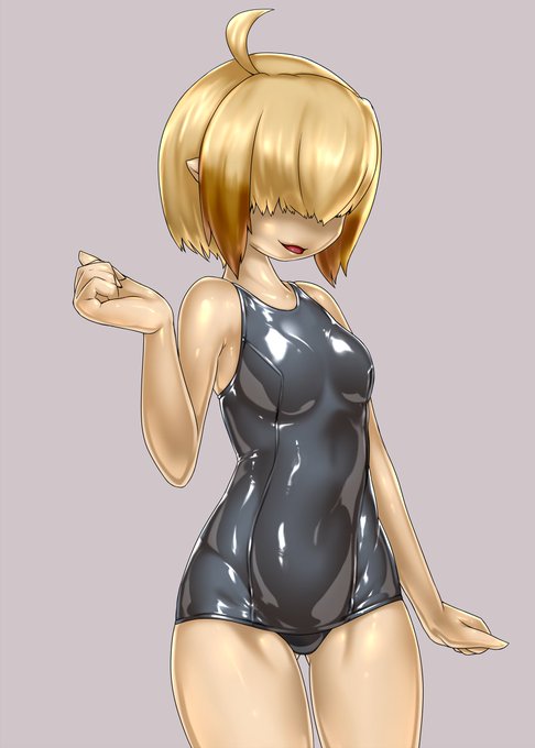 獅子竜さん(@xiaoray222)宅のクオーリアさん、つるぷにスク水装備で描かせて頂きました!
