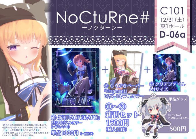 あなたのサークル「NoCtuRne#」は、コミックマーケット101で「土曜日東地区 "D " 06a」に配置されました! コミケWebカタログwebcatalog.circle.ms/Perma/Circle/1… #C101WebCatalog 受かったので初参加!オリジナルの本が出るといいな!!