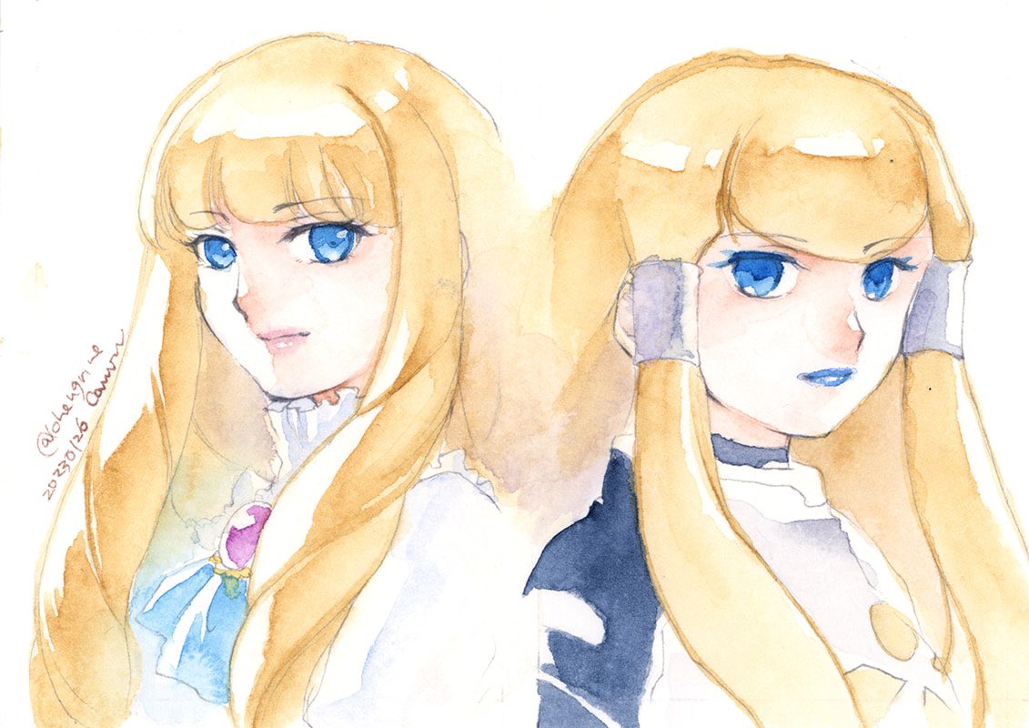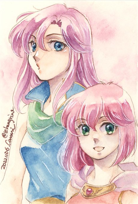 Day29: ファリス&レナ(5) どちらもオペラオムニアでは天野版デザインでリファインされてるけど、やっぱり渋谷版が一番馴染み深いのだった… 透明水彩・コピックマルチライナー クレスター水彩紙 #inktober #inktober2022 #透明水彩