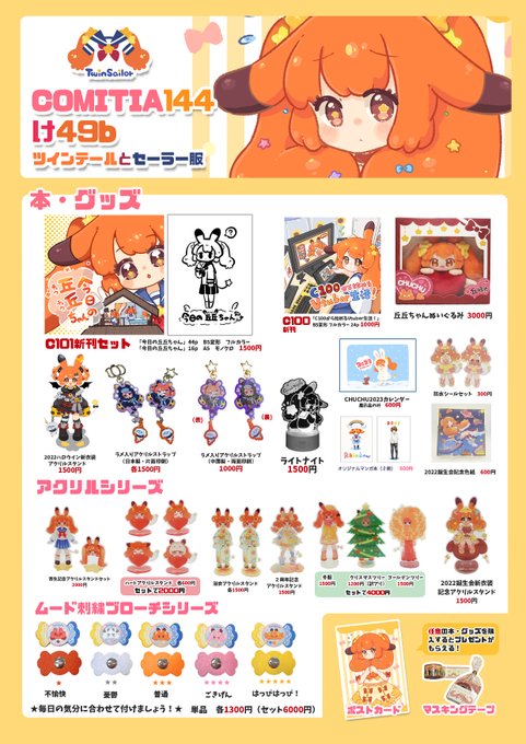 ⭐️コミティア144お品書き⭐️ができました~~!! スペースは【け49b】となります! 新作はポスカ以外はないですが、 コミケ101の既刊と準新作のグッズ持っていきます~!! もしよければ遊びに来てください~~☺️ お待ちしております🥺!! #COMITIA144 #コミティア144 #コミティア144お品書き