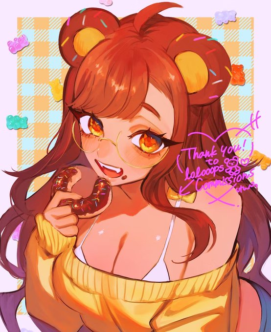 1 5 I've been so busy lately I forgot to show this adorable skeb I got recently!! It's doughnut time 💛🍩 🎨💕: @/_k2_666_ 23/03/24 08:09