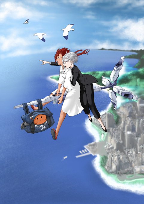703 2755 魔女の宅急便オマージュ〜 ミオリネさんのお仕事を手伝うスレッタ。エモエモo(^▽^)o 都市の3Dやってみたけど馴染ませるのむずすぎ・・・微調整必須 Blender重すぎるんよなー😢 #水星の魔女 #イラスト 23/08/21 00:03