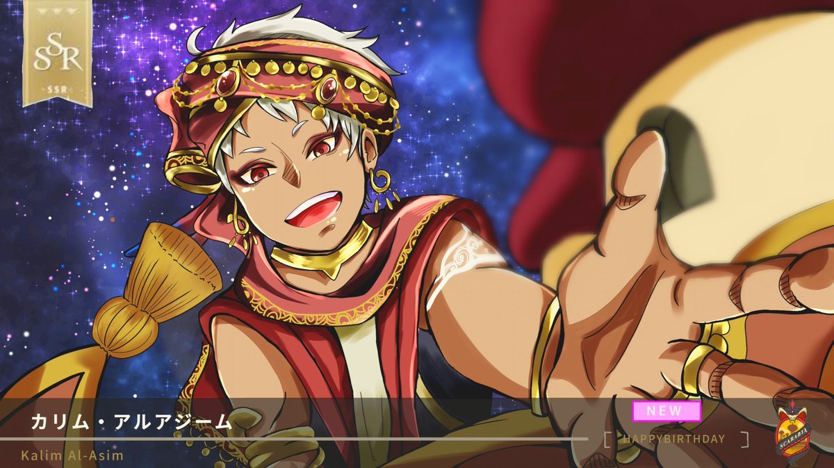 『大丈夫だって。オレを信じろ。』 ⚠4章ネタバレ リア友が誕生日だけどカリムくんのssrが来ないらしいので、プレゼントに。 カリムくんのSSRをお出迎え出来ますように! #ツイステッドワンダーランド #ツイステファンアート #カリム・アルアジーム