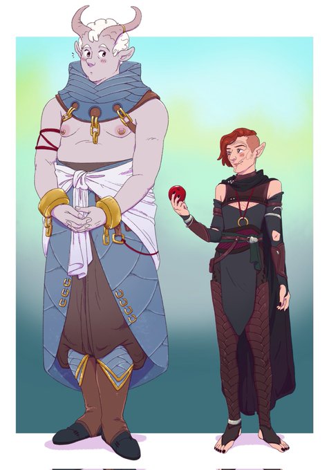 Dragon Age AU!! Qunari saarebas Aziraphale and Dalish Rogue turned Crow (no pun intended) Crowley (from a conversation with @cassie_ohpeia and @kaiart525 💗) #GoodOmensFanArt #IneffableHusbands #aziracrow